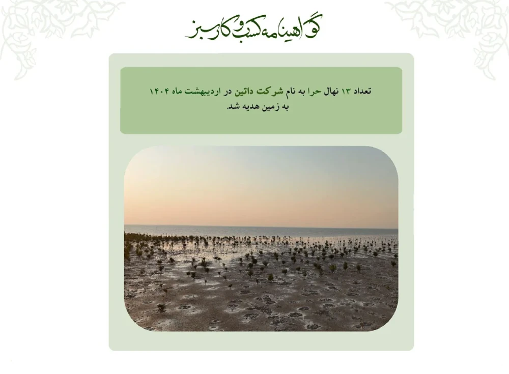 در سیزدهمین سال فعالیتمان در داتین و به مناسبت روز درختکاری در سال ۱۴۰۳، تصمیم گرفتیم ۱۳ رأس درخت حرا را در جنگلهای دریایی حرا واقع در استان بوشهر، شهرستان دلوار، بکاریم تا نمادی باشد از هر سال اثرگذاریمان در حوزه بانکی و مالی. ما این مسئولیت اجتماعی را با مشارکت موسسه کاشت و داشت روستاگل به انجام رساندیم.
